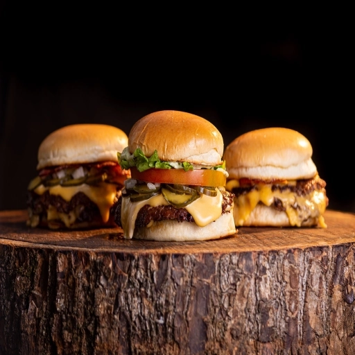 hambúrguer, calabresa, queijo, presunto e maionese.