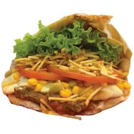 Filê de frango, queijo, presunto, alface, tomate, milho, bacon e maionese.